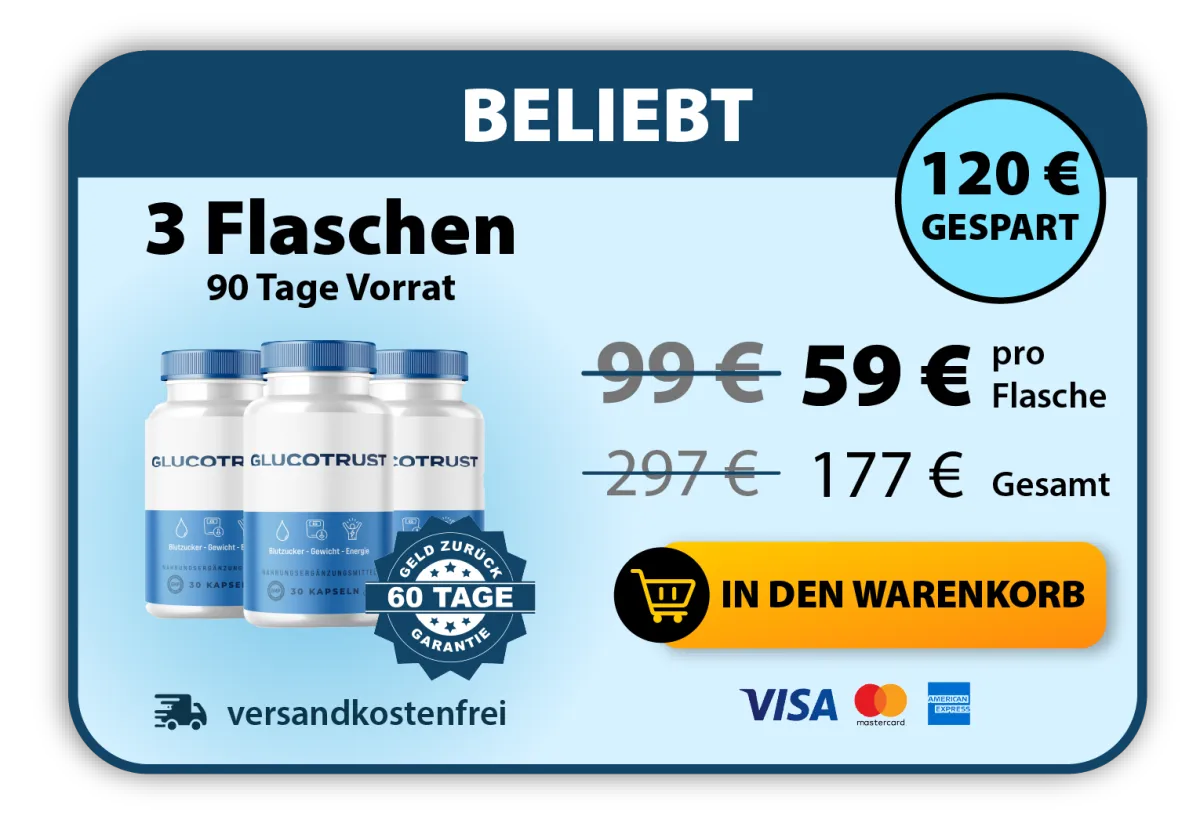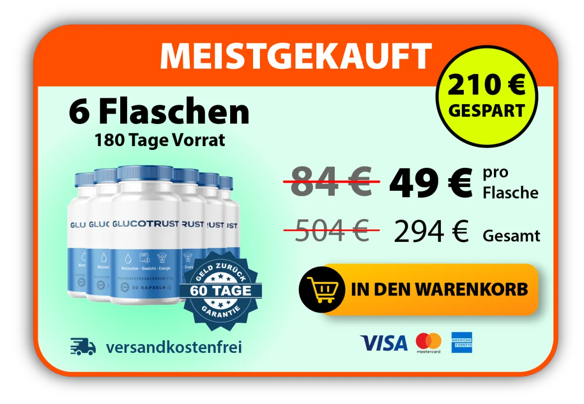 Testen Sie GlucoTrust 60 Tage lang völlig risikofrei. Das sind 6 komplette Monate Zeit, um die Transport-Optimierung zu erleben.